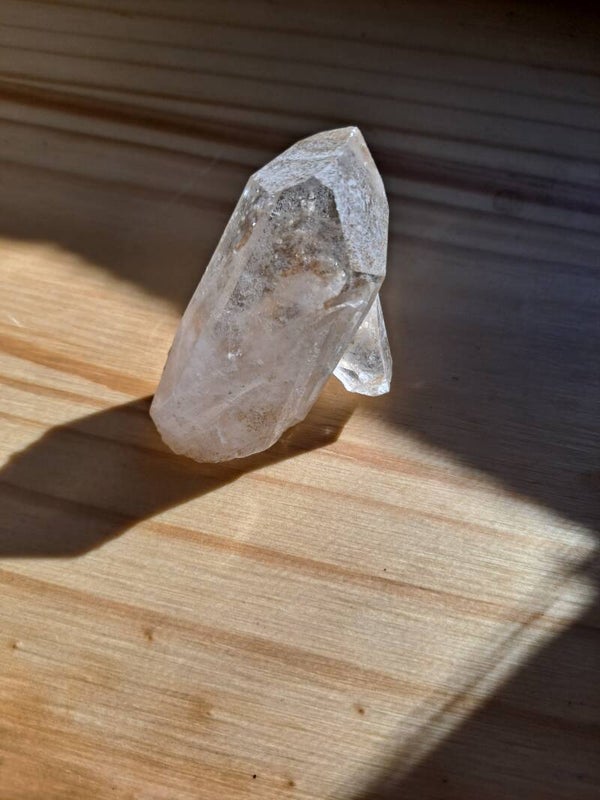 Small quartz crystal point with trigger growth on the side. Naturally free standing! Perfect stone for any collection.