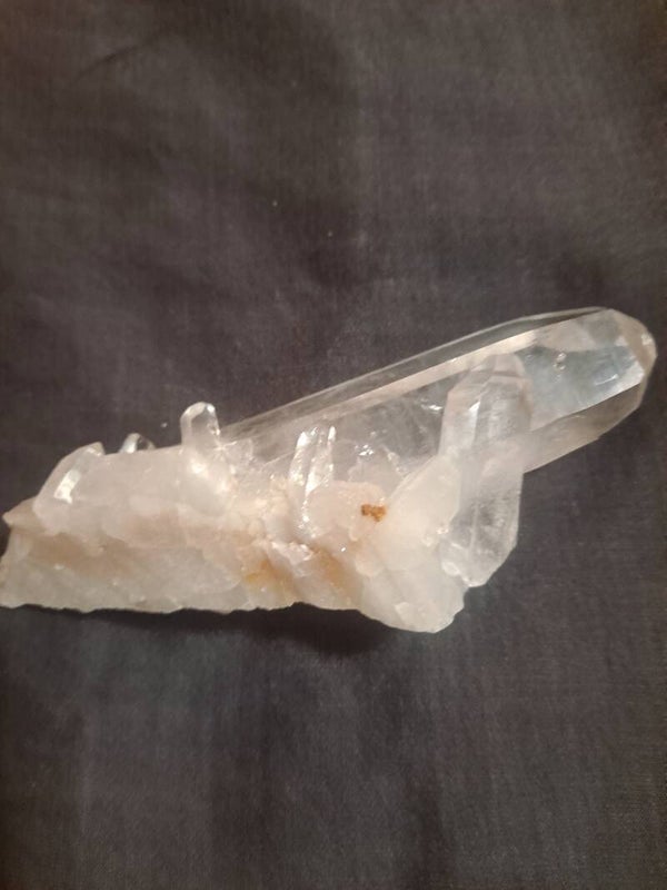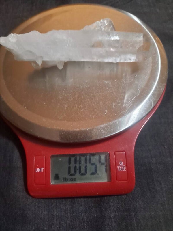 Water clear with multiple Crystal Growths. Has small chip in tip as this crystal was mined in the raw. Still absolutely amazing.